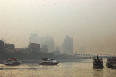 ■11月底,廣州灰霾鎖城,黑碳粒子濃度超正常值10倍以上。 敖敏輝 攝