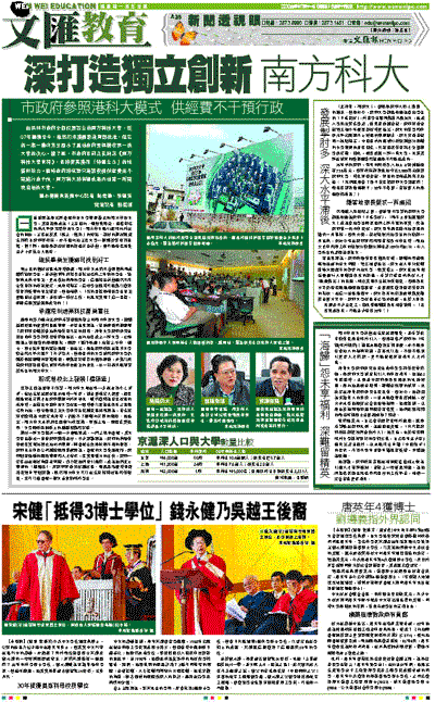 辦好一所大學絕非一朝一夕便能完成。一河之隔的香港,其大學管治模式一直被深圳輿論看好,不少建議認為,深圳的高等教育想要實現跳躍式地向前發展,與香港合作是條很不錯的捷徑。深圳光元科技公司副總經理吳斌認為,香港的大學資源雄厚,深圳則有強勁的經濟發展和人才需求,要實現雙方的合作,深圳一定要站在港校角度看問題,盡力把他們吸引過來,成為他們北上發展的「橋頭堡」。原深圳市委黨校副校長、現鳳凰衛視時事評論員劉申寧則建議,既然南方科大可以在全球招聘校長和教職員,也可以像香港一樣大量吸納海外學生。