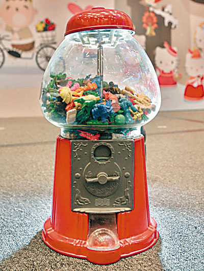 ■扭蛋機裡面的玩具,有部分是李守政保存至今的兒時玩具。