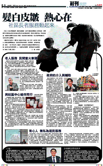 九龍城是本港其中一個長者人數最多的地區。數十年前,區內有一班有心人組織自願關顧服務,促使官民商合作無間,成效顯著,甚具參考價值。最近,一班大學生深入九龍城,研究區內長者服務的經驗和成功之道。副刊記者亦訪問有關人士、官員和研究團隊,嘗試為其它地區尋找老人服務「必勝」秘訣。