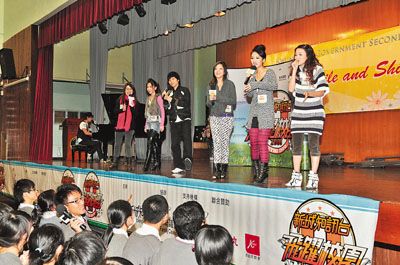 ■Hotcha(圖右三姝)「飛躍校園」,與學生們分享與家人相處之道。