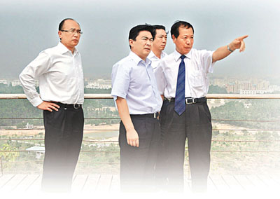 深圳市委副書記、代市長王榮(左二)在坪山新區調研。