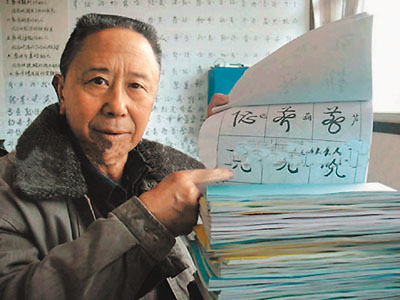 今年65歲的孫昌文是個農民,一年多前因病而放棄做農活。突然閒下來的他,頓覺日子太單調,便買來文房四寶,為自己佈置了一間書房,開始每天練習毛筆字,專研草書。