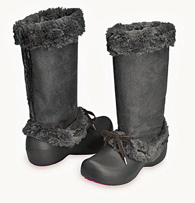 ■crocs 新推出的Hayley長靴,鞋筒頂端及底部均綴以毛毛飾邊,型格之餘不失活潑可愛元素。 $548