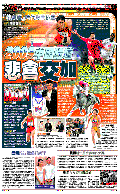 有人功成身退,有人嶄露頭角;有人苦盡甘來,有人樂極生悲;有掉進「藥瓶子」的悲哀,有整治「假賭黑」的振奮……2009年的中國體壇,在「後奧運」時代的節拍中,上演了一齣驚心動魄的喜劇、悲劇和鬧劇,供人談笑,令人回味。 ■資料來源:新華社