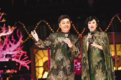 【本報訊】(記者 李寶雯)「金曲靚聲王」張偉文(圖左)夥拍「發燒靚聲后」呂珊,前晚假香港文化中心舉行「聲王星后—百代金曲巨聲演唱會」。這兩位聲王星后同台即擦出火花,誓要將當年十里洋場的夜上海重現二十一世紀舞台。他倆不僅演繹多首經典金曲,還邀得劉韻及華娃兩位重量級嘉賓,以強勁陣容讓演唱會劃時代隆重上演。