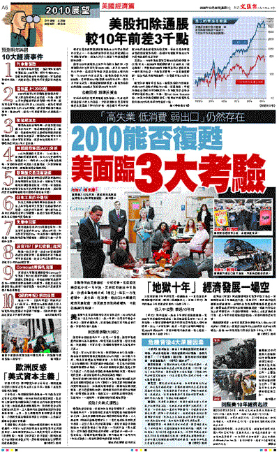 金融海嘯由美國爆發,全球受害。在經濟危機蔓延全球一年半後,美股近期創出今年新高,彷彿金融危機已成「歷史」,但在一片復甦聲中,高失業、低消費、弱出口3大關鍵仍威脅美國經濟,而美國要回復持續增長,可能起碼需5年時間。