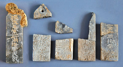 對於有網友指「『曹操高陵』出土的石牌更像是倉庫裡的說明牌,而不是墓葬所用的物件」,潘偉斌回應,此次出土的近60枚石牌(圖),集中於後室的南側室,這些側室就是曹操陵墓的倉庫,銘牌正是倉庫內隨葬物品的清單,這種東西有一個專有名詞—「遣冊」。
