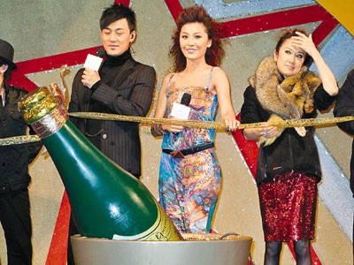 【本報訊】周麗淇與林峰、呂珊(見圖)等嘉賓早前在澳門十六浦酒店擔任倒數活動嘉賓,並與現場近千觀眾一同玩遊戲及倒數。周麗淇更率先以2010春夏的Low-cut型格服裝亮相,雖然當晚天氣相當寒冷,但周麗淇仍然堅持不穿著外套。