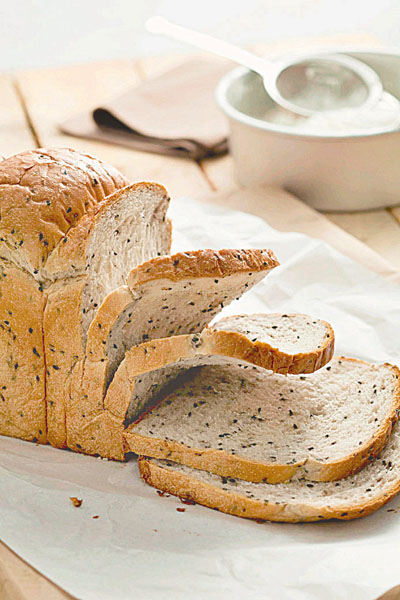 以獨有熱水打粉手法製成的湯種黑芝麻吐司,口感更為鬆軟。$11/5片、$20/條(d)