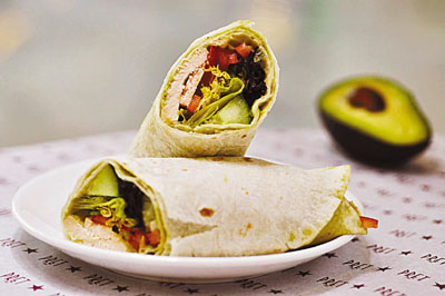 以嫩滑雞肉配紅椒及青瓜的墨西哥牛油果雞肉沙律卷,特別之處在於秘製的牛油果沙律醬,不但味美,牛油果更有助抗氧化,女士最愛。$36(c)
