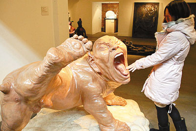 一個名為「一個強烈的哈欠」雕塑在上海某創意園區展示,其誇張的形態「雷」倒觀眾。該作品意在通過生活常態,來釋放都市人壓抑的心情。 中新社