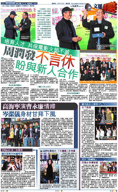 【本報訊】(記者 李慶全)由香港藝術發展局主辦的「鮮浪潮2010—本地競賽部分」昨日假文化中心舉行記者會,出席人士包括有藝發局電影及媒體藝術組主席杜琪峰、主禮嘉賓周潤發、導師劉國昌及鄭保瑞。發哥接受頒贈紀念品時一看是個疏孔的碗,他即搞笑地說:「即是叫我唔使撈啦!」