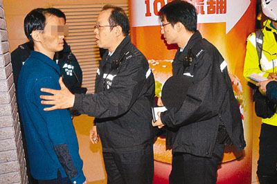 ■中年漢(左)向警員表示派錢可令自己開心。