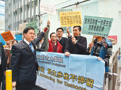 他又重申,全國人大常委會在07年的《決定》訂下普選時間表,當然當局依然要處理普選的模式與路線圖,「但是我們按部就班的處理,完全是可以」,因此,今時今日支持2012年建議的方案,與大家繼續爭取2017年、2020年落實普選的模式,「是沒有衝突,完全可以並存」,而這亦對日後落實普選與「5部曲」工作,更有信心與經驗。