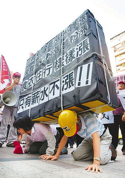 統計表明,2009年1至11月工業和服務業月均薪資為42,000多元(新台幣,下同),扣掉獎金和加班費之後,每個月固定可以領到的經常性薪資35,000多元,也減少2.3%,同時創史上最大減幅。考量物價之後,併計獎金和加班費的實質平均薪資不到41,000,僅僅與13年前薪資水準持平。