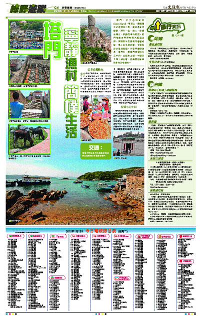 塔門,英文名叫草洲(GrassIsland),事實上,這個獨立於滄海的小島,真的是草坪遍野,海天一色,給人一份遺世獨立、寧靜簡樸的感覺。塔門地處赤門海峽與大鵬灣之間,與西貢半島高流灣遙遙相對,島上有多條村落,全部皆位於島的西面。以塔門碼頭為界,塔門市,即塔門海旁街在正中間,北面有上圍、中圍及下圍三條村落,而南面則有漁民新村及榕樹村。