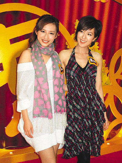 ■唐詩詠(右)和龔嘉欣出席賀年活動。
