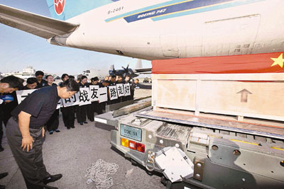 據新華社報道,中國南方航空公司的救災貨運包機於17日從海地運送8名中國維和人員遺體回國。為此,救災包機回程路線更改,將直飛北京,預計19日上午抵達北京首都國際機場。