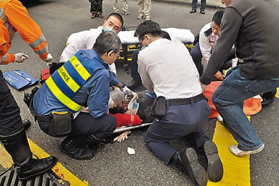 【本報訊】中環一名年輕女文員,昨午在金鐘道近紅棉道交通燈口,見慢線巴士停下,疑誤以為已轉燈號,橫過馬路時,慘被沿快線駛至輕型貨車撞倒,當場飛彈2米倒地重傷,送院證實不治。