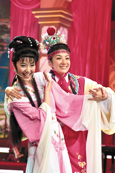 黃奕、楊瀾、馬伊琍、王冠、鄔君梅等眾多上海籍演藝界名人,齊聚東方衛視節目《可凡傾聽》,黃奕向高難度挑戰,在節目中反串扮賈寶玉,披上戲服一展越劇才華。準備充足的黃奕以寶哥哥扮相出場,便迎來了一片艷羨目光,四方台步有條不紊,越劇唱腔甚為專業,寶玉的俊美也被展現得淋漓盡致。好姐妹上海主持人王冠也變成了嬌小柔弱的林妹妹,黃奕與王冠的「寶黛」二人組堪稱天作之合(見圖)。