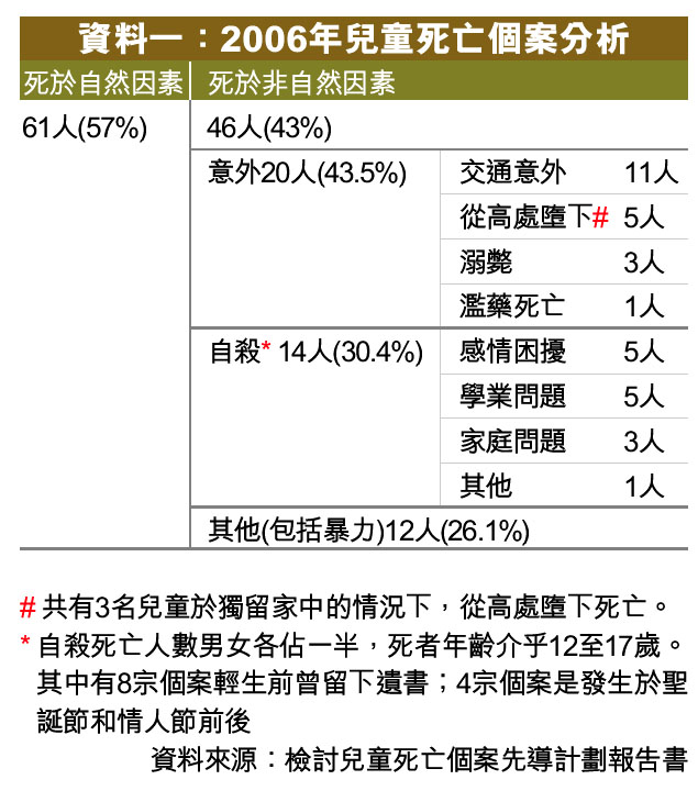 資料一:2006年兒童死亡個案分析 (圖)