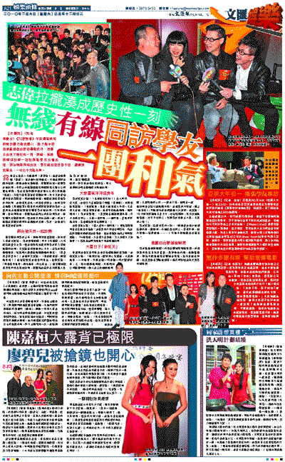 學友笑笑口說:「真係世紀時刻!」各人即哄堂大笑,志偉又以普通話說了兩聲「沒關係」,再轉回廣東話說:「電影宣傳,電影人做電影人本份,大台有大台做,細台有細台做,邊有咁多風風雨雨,無所謂啦!」學友也答謂:「其實講普通話都幾辛苦,今日真係好開心,大家一家和氣,一團和氣,喜氣洋洋過新年,全香港娛樂事業都興旺。」