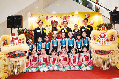 ■陽光資產管理有限公司主席謝偉銓(後排中)昨與嘉賓、財神及小公主舞蹈學院的小朋友大合照。 本報記者張偉民 攝