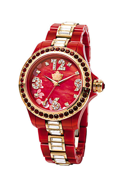 減肥、保養肌膚是女士們一生的事業,很多女士都希望時光逆轉,一向走時尚型格路線的手錶品牌Chouette,由本地鐘錶界美女胡敏珊所創立,以閃爍的水晶腕錶攻陷不少女士的芳心。剛推出的三款新錶打破傳統框框,以逆時針為題,採用獨特的逆時設計的石英機芯,令移動方向由順時針變為逆時針,連時間刻度也是逆時排列,創新前衛,甚有噱頭。新系列分別有黑、白色及紅色的款式,當中以紅色最為搶眼,珍珠貝母錶面,錶圈及錶冠綴以施華洛世奇水晶,配襯精鋼玫瑰金外框作點綴,型格搶眼。零售價$3,200,另凡於香港吉之島、萬寧、華潤萬家或屈臣氏指定商舖購買任何Olay Regenerist系列護膚產品1件,即可憑發票以換購價$1,399購買。