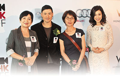 ■《月滿軒尼詩》被選為電影節「開幕電影」,導演岸西(右二)和張學友、張可頤、鮑起靜同感開心。