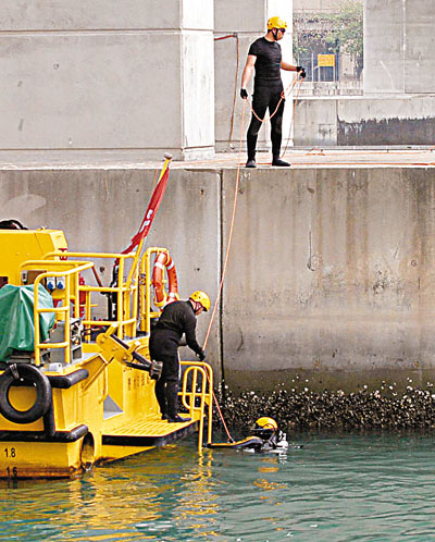 ■消防蛙人昨日主要在南橋橋躉下搜索失蹤男童。
