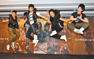 ■成龍子弟兵「新七小福」,昨日在台北《大兵小將》慶功記者會表演。
