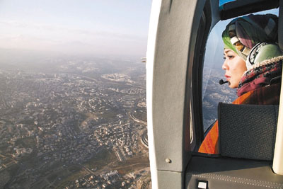 ■畏高的梁藝齡從直升機上望落來,不禁渾身顫抖。