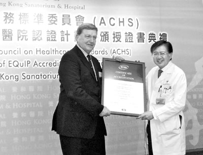 【本報訊】(記者 郝君兒)為提升管理水平,香港多間公立及私家醫院即將參加澳洲醫療服務標準委員會(簡稱ACHS)的「醫院認證計劃」,其中養和醫院去年底展開評審,並成功闖關,成為本港首間獲認證的醫院。負責評審的ACHS行政總裁Brian Johnson透露,已為5間參加認證的公立醫院作模擬考核,將於今年第3季進行審核。