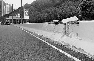 撞石壆後 再衝行50米