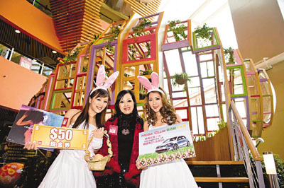 為迎接復活節,該商場斥資300萬元,以4D巨蛋花園作為復活節主題,並由荷蘭空運逾千朵鬱金香放置在巨蛋花園內,令遊人彷如置身一個鳥語花香的園林世界。該花園高16呎、闊24呎,旁邊設置多個巨型復活蛋佈置,內裡種滿色彩鮮艷的荷蘭鬱金香,花香濃郁,再配以悅耳鳥鳴聲。文靜芝預計,復活節人流比去年同期增加30%,營業額亦比平日增加約12%。
