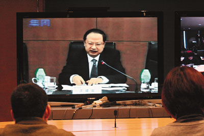 王建宙昨透過視像會議表示,中移動入股浦發行並非不務正業,也不會影響派息比率。本報記者張偉民攝