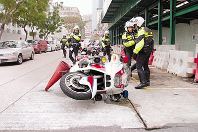 執行職務被的士撞傷的交通警員39歲,為隸屬西九龍交通部的高級警員,他左手及左腳擦傷,被送往明愛醫院治理敷藥後無大礙。