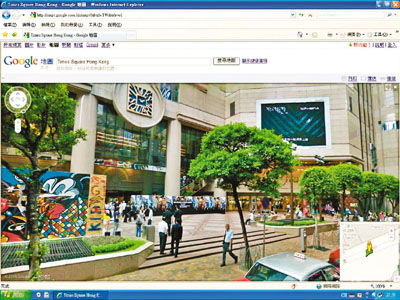 【本報訊】(記者 鄭佩琪)Google(谷歌)香港版及澳門版地圖昨日推出街景服務,香港版覆蓋全港大部分公共街道,澳門版則覆蓋新馬路以南地區。網民瀏覽時,可以360度觀看目標地點一帶的街道影像及垂直290度半空景象,仿如置身現場,足不出戶已能看清楚附近環境(見下圖),省卻走錯「冤枉路」的時間,外地網民更以當地的Google街景地圖「睇樓」。