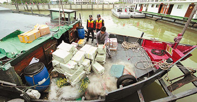 【本報廣東新聞中心記者羅冬凱、實習記者張廣珍珠海17日電】珠海拱北海關上周六(13日)在珠海市擔桿以東海域,截獲一艘走私高科技產品的船隻,在船艙中查獲985台高清數碼攝像機、2,975塊大容量電腦硬盤,總值約350萬元人民幣。據船上兩名被捕人士供認,該批走私物品自本港水域過駁,再運往內地銷售牟利。案件還在進一步偵辦中。 ■本報珠海傳真