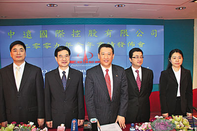 ■左起:中遠國際總經理助理王偉彬、董事副總經理林文進、董事總經理王曉東、財務總監羅肇良、企業傳訊部副總經理楊玲。本報記者趙建強 攝