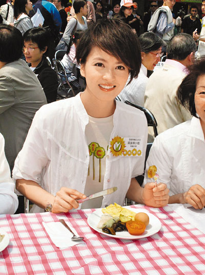 ■梁詠琪出席「有機同樂日」,在會場享用「有機早餐」。
