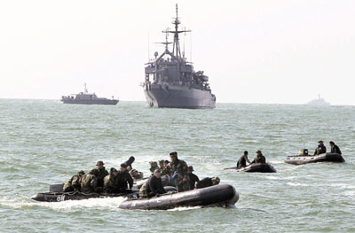 「天安艦」沉沒原因依然成謎,有輿論指艦身爆炸後20分鐘迅速沉沒,令人費解。軍方則認為現場距朝韓爭議水域「北方界線」仍有距離,潛艦或戰艦滲透有一定難度,而且水深只有20米,潛水艇難以活動,故傾向內部爆炸的說法。「天安艦」爆成兩截沉沒後,艦尾輪機艙及彈藥庫較重,事後立即沉至海底;較輕的艦首卻因海流太強而向東南方漂流約6.4公里。搜救失蹤者工作昨日繼續,海軍巨型海難打撈艦亦抵達現場,但估計「天安艦」打撈工作最快也得耗上個多月。 ■韓國《中央日報》/韓聯社