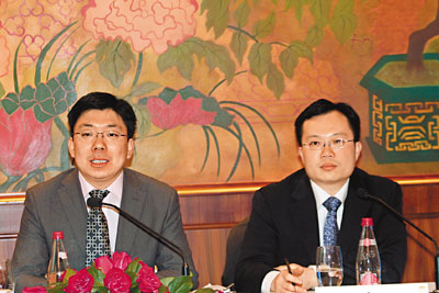 ■申銀萬國首席宏觀經濟分析師李慧勇(左)及A股策略研究主管袁宜。 本報記者張偉民 攝