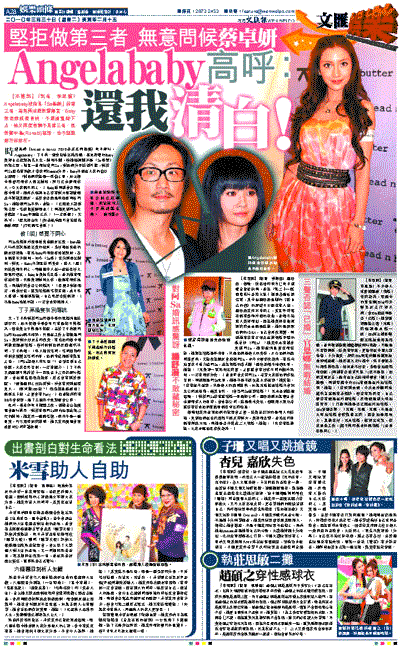 ¡@®É¸Ë«~µP¡mbread n butter 2010¬K®L¨t¦C¹wºt¡n¬Q¤éÁ|¦æ¡AAngelababy¡B¤B¤l°ª¡B±iêP®®µ¥¥X®u¬¡°Ê¡C®e¥ú·ØµoªºBabyı±o¦Û¤vªñ´Á®çªá¤Ó©ô¡Aãn»D¤£µ´¡A¦ý¦o±j½Õµ´«D¬O¡uSa°òÅÊ¡vªº²Ä¤TªÌ¡A©Z¨¥¤@ª½«ÜªY½àªüSa¡A¹ï¥L̤À¤â·P¨ì¥i±¤¡A¹ï©óªüSa³Q«ü¦³·sÅw¤~¾ÉP¦PRonald¤À¤â¡ABaby¤£·Q¦b¤H®aªº¶Ë¤f¤WÅxÆQ¡G¡u¹ï¥L̨ӻ¡¬O¤@¥ó¶Ë¤ß¨Æ¡A¥[¤W¾G¤¤°ò´¿©M«Ü¦h¤H¶Ç¥Xãn»D¡A©Ò¥H¤w²o¯A«Ü¦h¤H¡A¥O¤j®a³£¤£¶}¤ß¡C¡vBaby³Q°Ý¨ì·|§_°ÝÔ¾G¤¤°ò®É¡A¦o¦A¦¸±j½Õ¦Û¤v¨S¦³¹ï¤è¹q¸Ü¸¹½X¤Î¤£»{ÃѨäªB¤Í¡A¦Ü©ó·|§_³z¹L³¯°¶¾^°ÝÔªüSa¡A¦o»¡¸òªüSa¤£¼ô¡A¨Ã»¡¡G¡u¤w¸g³Q¤H¸Ü«Y²Ä¤TªÌ¡Aø´±´¡°¦¸}®I¥h¡I¡v°Ý¦o¨£¨ìªüSa¥i·|Àª§¼¡HBaby§Y³s»¡¤T¦¸¡G¡u¤@©w«Y°²¡v¡A¤S°ª©I¡G¡uÁÙ§Ú²M¥Õ§r¡I(§A¬K·º¡±¥i·|©È³Q«ü¬O³Ó§QªÌ¡H)¥´¦º³£ø·|«Y¡I¡v