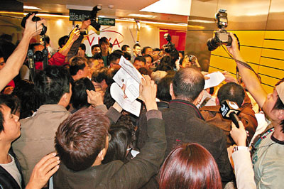 ■澳門非凡航空退票,情況一度混亂。 本報澳門傳真