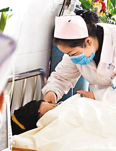 ■獲救礦工在泌陽縣人民醫院接受治療。 新華社