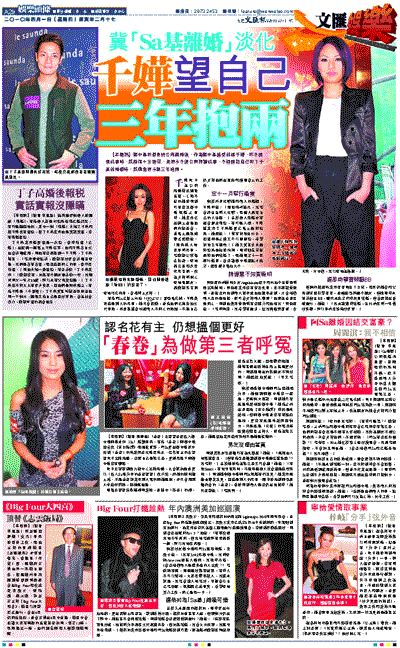 千嬅昨日為公開活動擔任頒獎嘉賓,心情不俗的她被問到可有留意鄭中基離婚之事時,她表示已在網上看過他們的記者會,並馬上連珠炮發式回應說:「呢件係人]家事同私事,唔應該公眾場合批評,佢]都三番四次要求畀空間,作為支持同關心佢]麊B友,都應該畀空間佢]淡化件事,會精神上支持。」