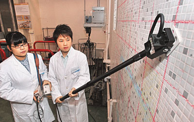 ■全港首個樓宇檢驗的證書課程設有模擬實驗室,供學員訓練。圖為紅外線熱像檢測樓宇外牆或石屎剝落的情況。 本報記者劉國權 攝