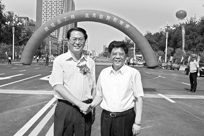 ■河北省委副書記、石家莊市委書記車俊和石家莊市長艾文禮出席石家莊迎賓大道通車儀式。 本報記者袁坤 攝